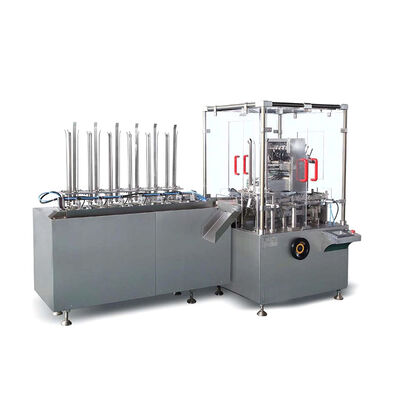 machine die zonder het drukken lopen als geen producten of onjuiste positie van producten. En einde automatisch als onjuiste positie van product in karton na terugkeer