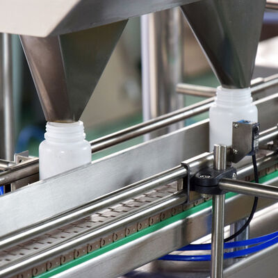 De teller met meerdere kanalen kan vaste deeltjes zoals pillen, tabletten, capsules (transparante of ondoorzichtige harde capsules, zachte capsules) tellen en verpakken. Het is geschikt voor tabletten, capsules, pillen van 3mm tot 20mm grootte. Deze machine wordt wijd gebruikt in wetenschappelijke onderzoeksinstellingen, de ziekenhuizen, farmaceutische installaties, laboratoria, en de fabrieken van gezondheidszorgproducten, overeenkomstig GMP vereisten. Het apparaat van de flessenkurk op het het met de fles grootbrengen spoor van het vervoerende flessenmechanisme zal de fles blokkeren van het hogere apparaat wordt vervoerd en zal bij de het bottelen positie ophouden die, die op het vullen wachten. De geneeskunde gaat de geneeskundekamer door de trilling van voeden in van golfkarton, en de tellende foto-elektrische sensor is geïnstalleerd op de geneeskundekamer. De geneeskunde die in de geneeskundekamer vallen wordt kwantitatief geteld door de foto-elektrische tellende sensor en in de fles in de het bottelen positie dan geladen.